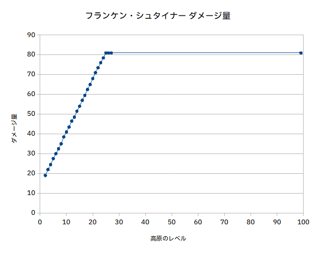 つまり、高原の装備を固定したまま、レベルだけ上げつつ、「フランケン・シュタイナー」のダメージ量を記録した結果、増加していくようなら「レベルの値はダメージ量計算に関わる」と考えて良いはずだ。