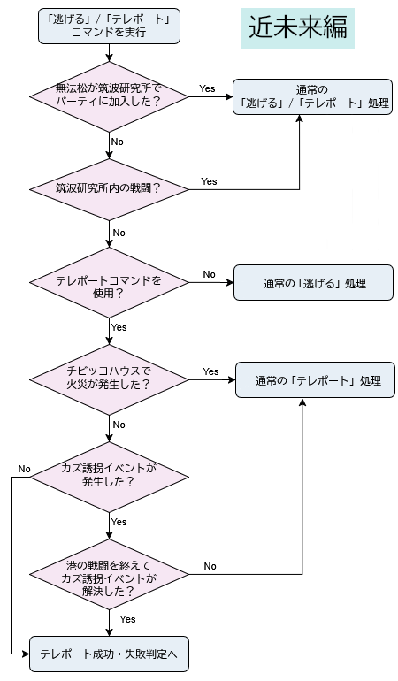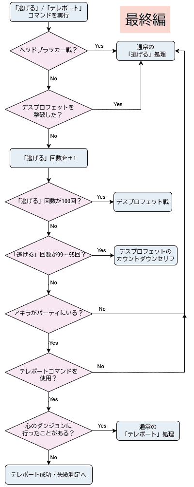 以上から、最終編で「逃げる」または「テレポート」コマンドを実行すると以上の順で処理・判定を行う。